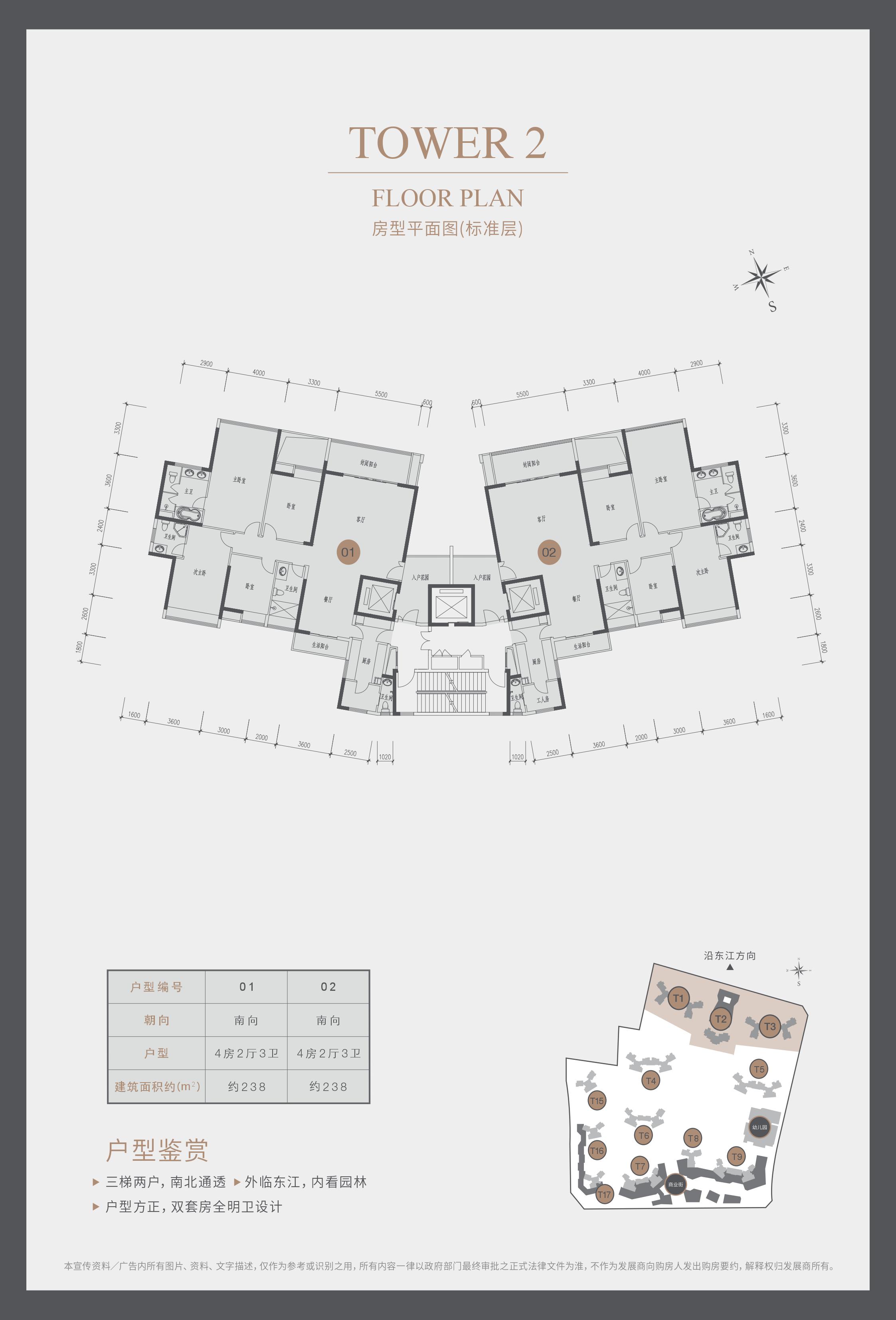 【1】雄踞湾区东江之畔,纯正一线江景大盘,逾 900米超宽江面,约2.2公里滨江风光一览无遗 【2】新东莞火车站约750米,坐拥大湾区枢纽之广深铁路中心和东莞首条地铁R2线始发站 【3】即享醇熟商业配套,楼上生活,楼下休闲。