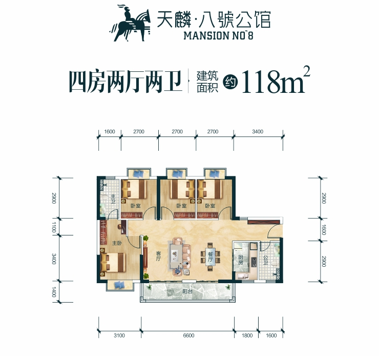 客厅与餐厅阳台贯通,彰显畅辽境界 6.6米阔景阳台,270°蓄养朗阔情怀 主卧独立卫浴,弥漫尊贵优雅气度